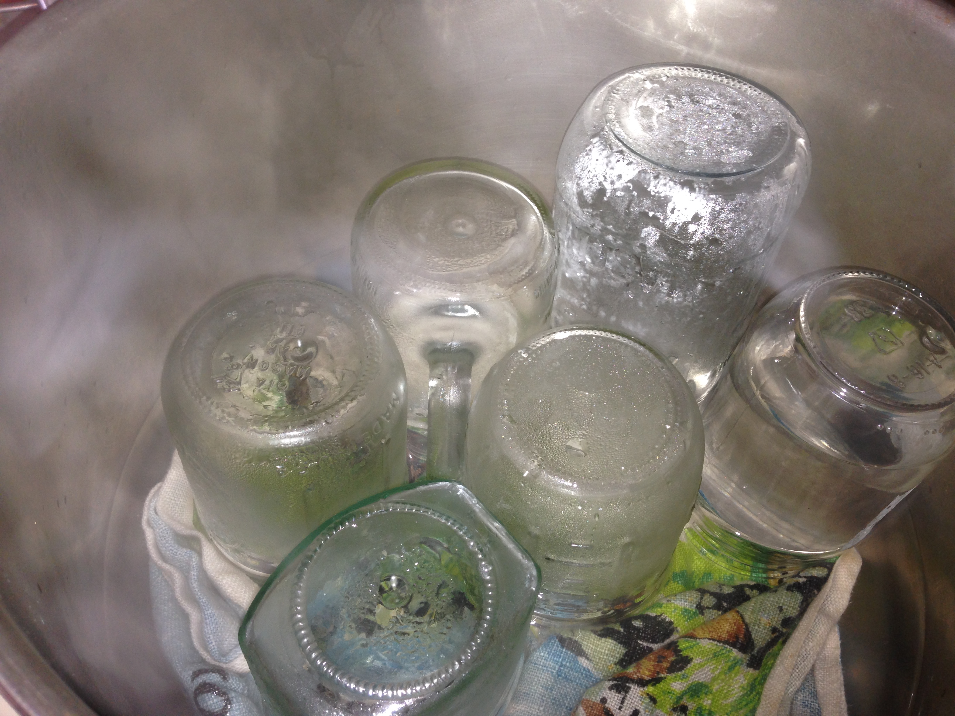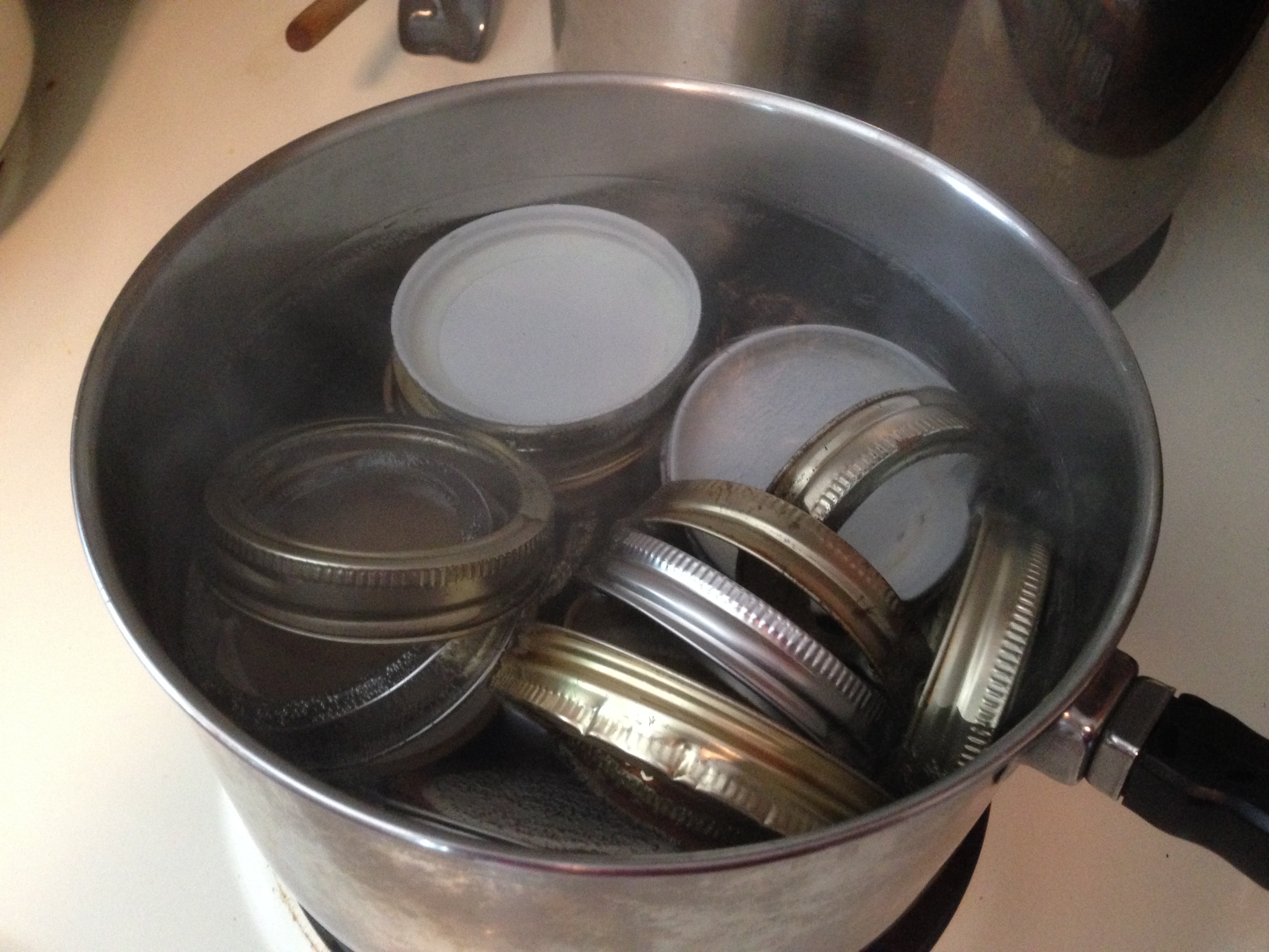STEP EIGHT:  We cleaned and sterilized all the jars and tops in boiling water.  The seals were purchased new since they can’t be reused from year-to-year.
